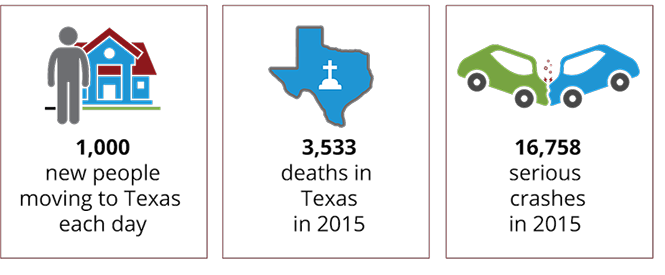 “Texas recorded 16,758 serious crashes that resulted in 3,533 deaths in 2015,” Moseley said. “The good news is that number is slightly less than the 3,536 deaths recorded in 2014.” Moseley was encouraged by the 2015 figures, especially considering the increased demand on our roadway system with “a thousand new people coming to live in Texas every day.”